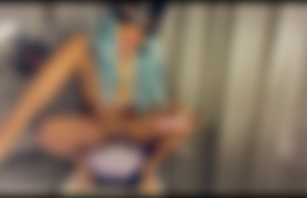 Chica erotica se jamaquea en su pene de goma arriba del inodoro, no aguanto el deseo y se metio a su baño.